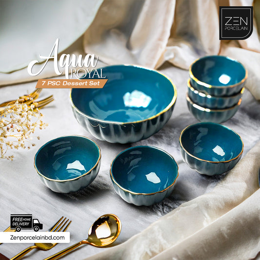 Aqua Royal 7 Pieces Dessert Bowl Set - (With Gold Lining)