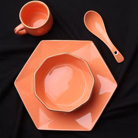Peach Diamond Cut Baby Set with Gold Lining - 4 Pcs