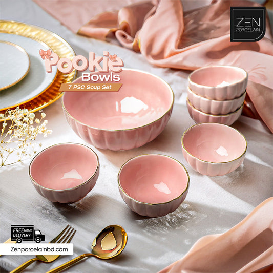 Pookie Bowl 7 Pieces Soup Bowl Set - (With Gold Lining)