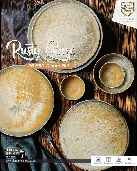 Rusty Glaze 26 Pieces Dinner Set - (Rustic Texture)