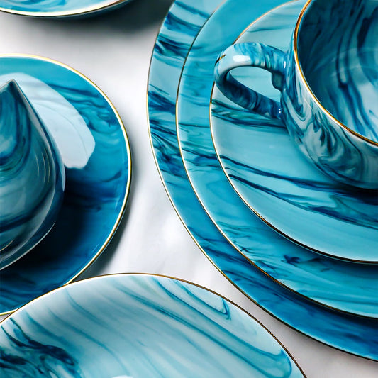 Aqua Marble 32 Pieces Dinner Set (With Gold Lining)
