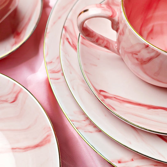 Marble Rose 32 Pieces Dinner Set (With Gold Lining)